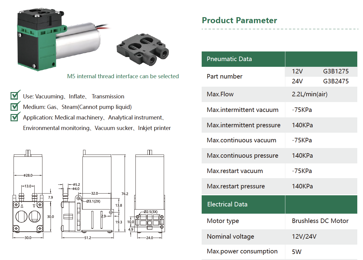 Environmental usage:Gas sampling, used in environmental protection equipment